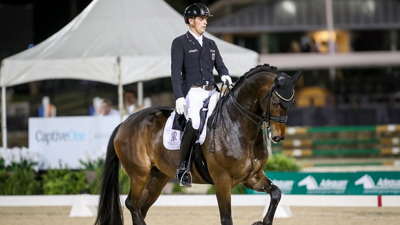 German rider Frederic Wandres capitalized on his already lucrative season, winning the Grand Prix Freestyle CDI5*, presented by CaptiveOne Advisors, on Bluetooth OLD with 81.165%. Laurence Vanommeslaghe (BEL) filled second with an energetic performance on Edison (79.430%) and Spain’s Juan Matute Guimon finished third on Quantico (78.925%). Click to watch Frederic Wandres’ winning ride. “Bluetooth is getting better and better, said Wandres of the 12-year-old Oldenburg gelding by Bordeaux. I get more and more the feeling that I can ride during the test, and he offers me a very good feeling. I’m super happy about his development here in the Wellington season. For him the season is finished now, and he has a few more weeks here to rest a little bit and enjoy the Florida sun before he goes home. Then we are looking forward and trying to take these things which we achieved and developed here together with us to Europe.