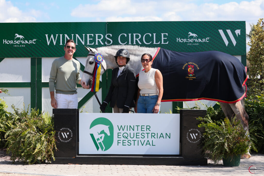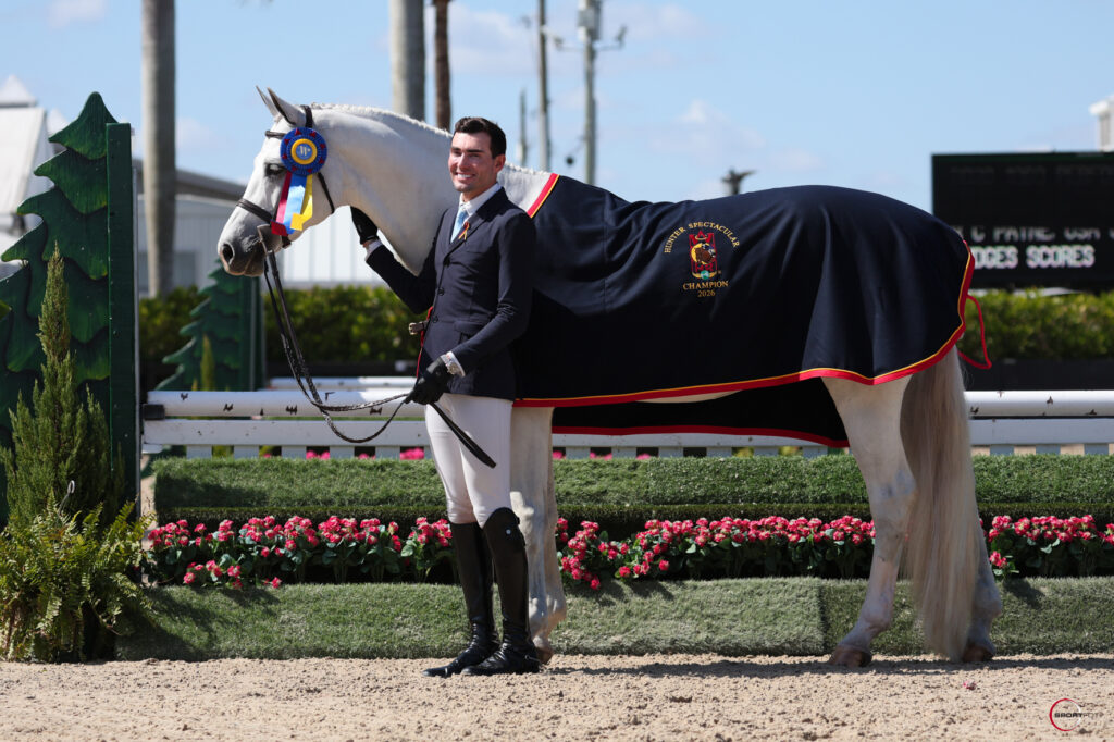 Wellington, Fla. – February 12, 2026—A champion ribbon for Nick Haness of Temecula, CA, and Styled highlighted Thursday of World Championship Hunter Rider (WCHR) Week during the 2026 Winter Equestrian Festival (WEF). In a California split Equine Tack & Nutritionals 3’6” Green Hunter division, Haness and Styled were joined by Scott Stewart of Wellington, FL, and Cadet to accept division tricolors.