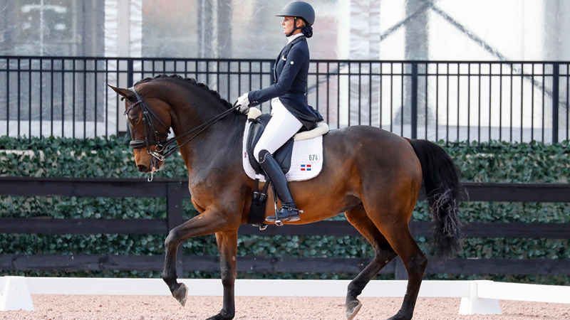 She feels amazing, but I’m a bit rusty! commented Losos De Muniz of her equine partner and their performance. I thought I was a little better prepared than I actually was, but it was our first time out, which always feels a bit that way. It feels really good to start so well, though. All the mistakes I have to say were 100 percent mine. She feels the best she probably has been for me. It’s just getting back in there and feeling what I’ve got, and it’s exciting! Losos De Muniz and Aquamarijn returned to the ring the next day with momentum and turned in a quality performance that resulted in a score of 79.625% in the Grand Prix Freestyle CDIW, securing them the top spot by more than five percent.
